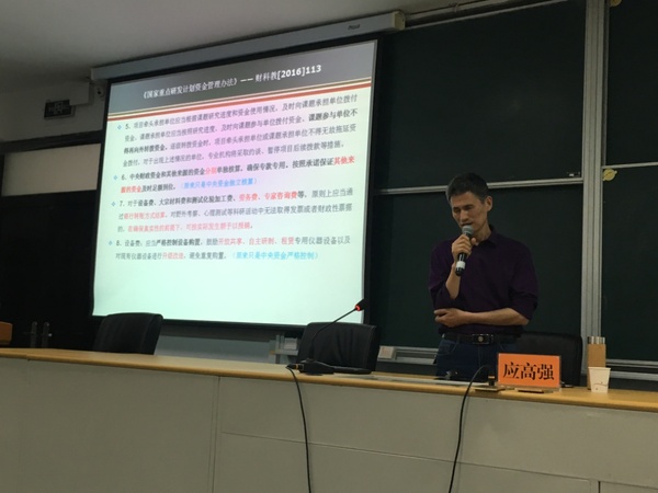 浙江中瑞华会计师事务所有限公司副所长应高强,就规范使用科研项目财政经费展开讲解,讲话中对经费管理的主要文件、项目终止或验收规定、项目资金开支范围以及各科目经费使用规范等内容作了细致地讲解。