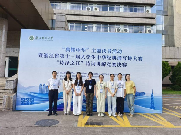在刚刚落幕的2025年“典耀中华”主题读书活动暨浙江省第十三届大学生中华经典诵写讲大赛“诗泽之江”诗词讲解竞赛中,我校应用英语专业学生高玉结(指导老师:龚慧兰)脱颖而出,获得高职高专组一等奖。另外还有八位同学获奖,分别是袁锦贵老师指导的鲍颖颖、闫姗老师指导的徐睿宸、叶亿天和龚慧兰老师指导的许诗雨同时获得二等奖,袁锦贵老师指导的俞惠飘、闫姗老师指导的缪艺卓、龚慧兰老师指导的林珂妙、燕晓洋老师指导的潘韬获得三等奖。