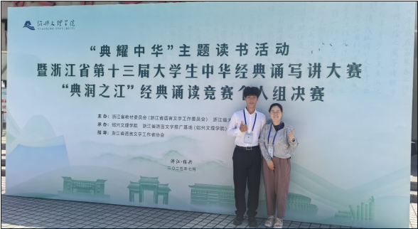 近日,典耀中华主题读书活动暨浙江省第十三届大学生中华经典诵写讲大赛典润之江个人组决赛于2025年7月3日至7月4日在绍兴文理学院举行。本次竞赛历时两个多月,共分初赛和决赛两个环节。经过激烈角逐,我校医学院24中药专业1班蒋敏凯同学(指导教师盛春艳、燕晓洋)表现优异,斩获高职高专组个人赛一等奖。另外陈奕翰(龚慧兰、雷媛洁)、施方圆(盛春艳、雷媛洁)、张诗吟(闫姗、张丽娜)三位同学获得个人赛省赛三等奖,另外综合组杨振飞(龚慧兰、袁锦贵)获得三等奖一项。